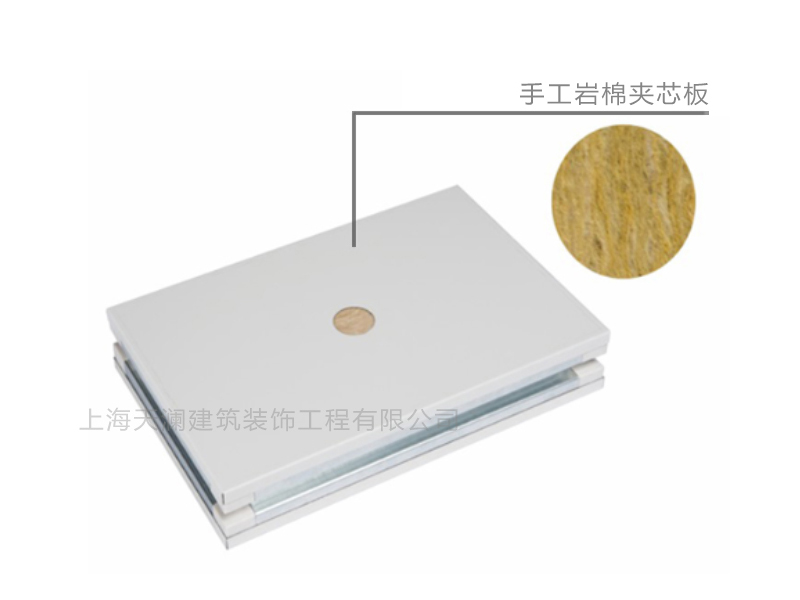 手工巖棉夾芯板構成:雙層鋼板,內夾巖棉/礦棉夾芯材料,采用手工制作工藝。巖棉又稱巖石棉是礦物棉的一種,以天然巖石及礦物等原料制成的蓬松狀短細纖維,不可燃。
