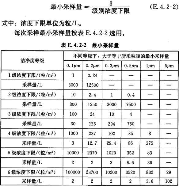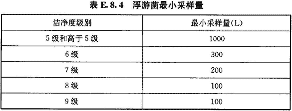 4 每點(diǎn)采樣1次,如工藝無特殊要求,每次采樣量應(yīng)大于等于表E.8.4推薦的浮游菌最小采樣量。
