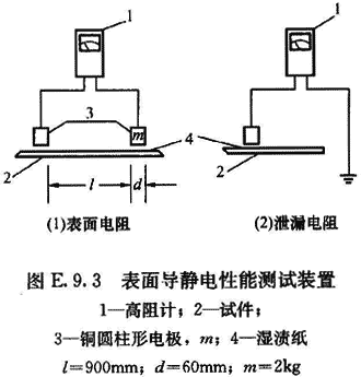 E.9.2 地面、墻面和工作臺面等表面導(dǎo)靜電性能應(yīng)采用符合精度要求的高阻計(jì)檢測。