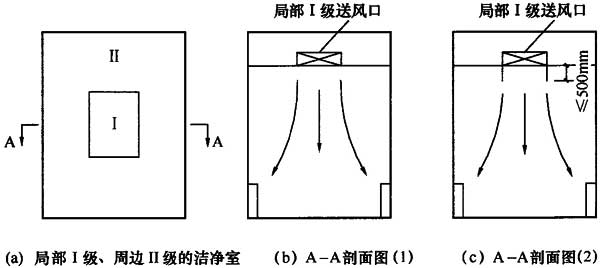 時,背景環境可不另設送風口。這一方法已被現行國家標準《醫院潔凈手術部建筑技術規范》GB 50333所采用,也被俄羅斯醫院標準所采用。需要注意的是本條款不適用于自循環的送風末端(如FFU、層流罩等),當局部Ⅰ級采用自循環的送風末端時,背景環境宜另設送風口。