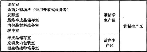 表1 一般食品生產車間管制生產區